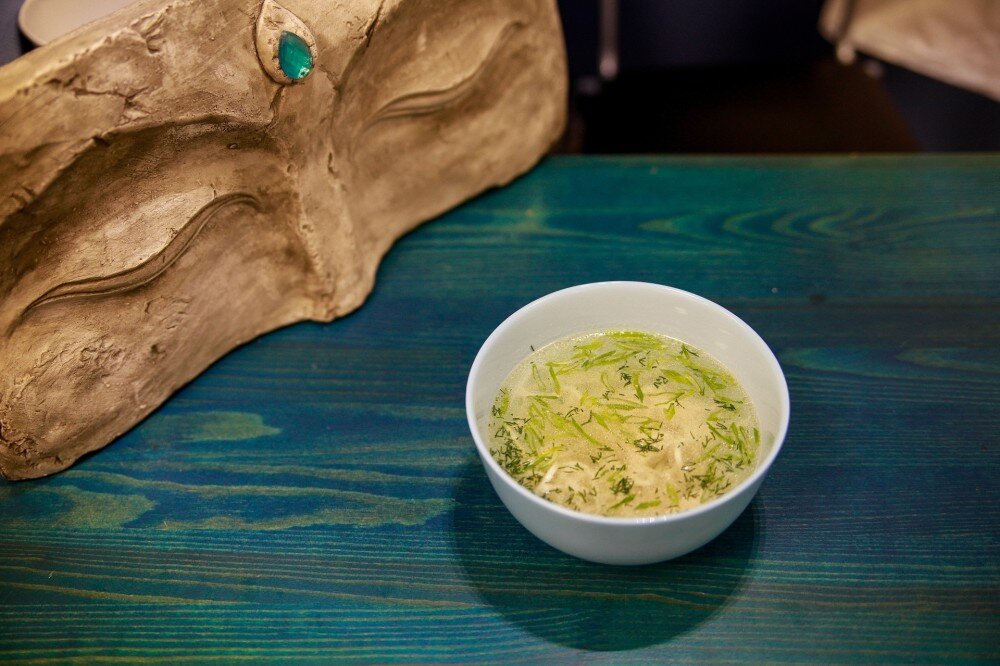 Диетический куриный бульон с домашней лапшой, мясом и зеленью